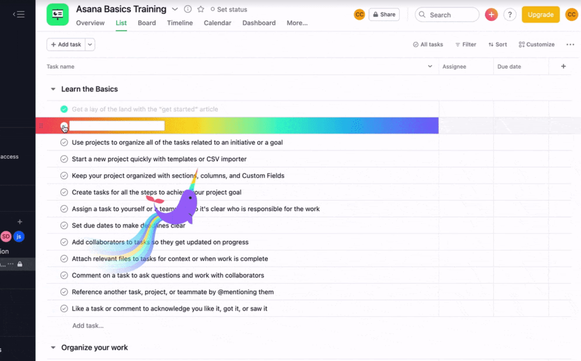 Microinteractions can help provide positive reinforcement to the user, such as Asana’s narwhal (pictured below) which helps to reinforce desired behavior from users.