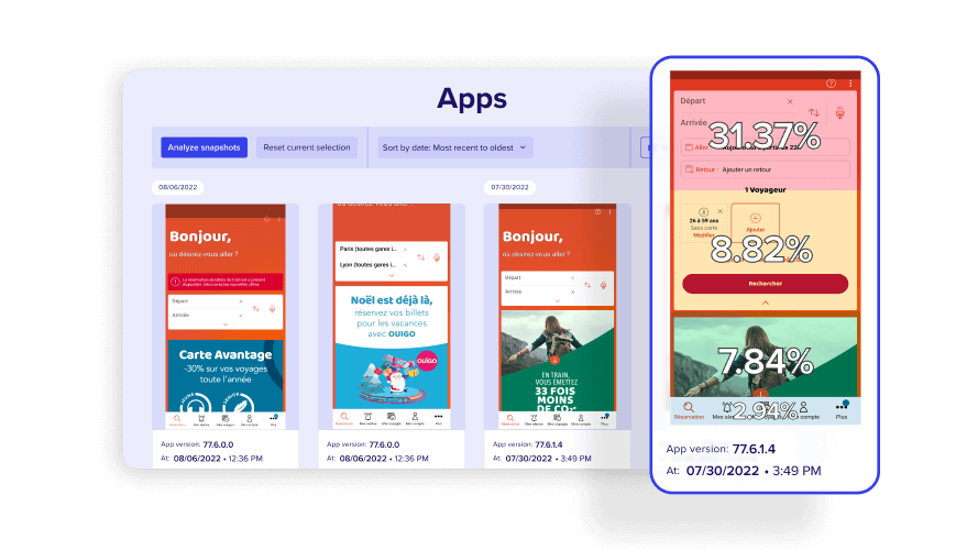Identifiez automatiquement les obstacles liés aux problèmes techniques ou aux faibles performances de vos sites et applications. Corrigez les incidents et priorisez les actions qui auront le plus d’impact pour vos utilisateurs.
